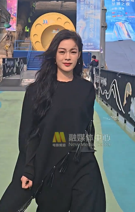 而到了内场的马丽,则是身穿立体花瓣长裙,彰显出女明星的星光。