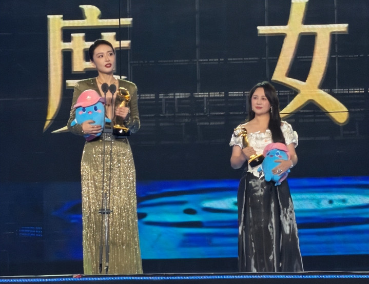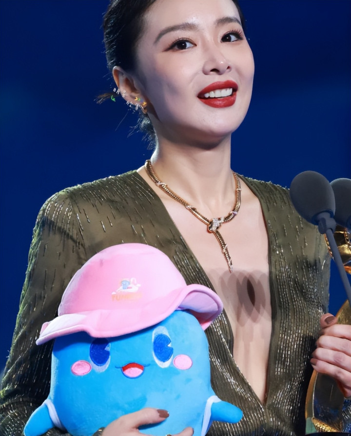 在中国电影之夜的颁奖典礼上,她跟马丽共同获得了年度女演员这个奖项。